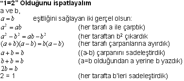 Dilerseniz her tarafı 2'ye bölerek 1=0 ispatını yapmış olursunuz! Bir yanlış var ama nerde?